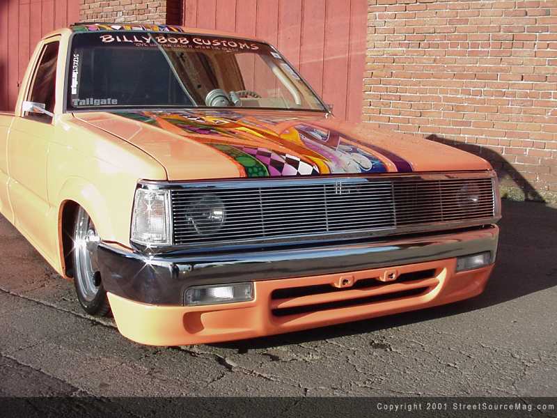 With the suspension having been reworked and the engine bay smoothed out and gleaming, it was time to work the exterior confines. Beginning in the front, the bottom half of a 2600i hood would be smoothed out helping the clean look of the engine bay when open. The stock headlights would be replaced with a set off of a '72 GMC truck to complete a H-4 conversion. The stock grille would be replaced by a preferred and much needed Trenz polished billet phantom grille. The front fenders would receive some of Chris's attention with the antenna hole being shaved along with the emblem holes. A Toyota 4-runner bumper would accompany the new grille and front end look. With the bumper being chrome plated, the valance would be painted to match to make sure the mini was not overwhelmed with chrome on the exterior.