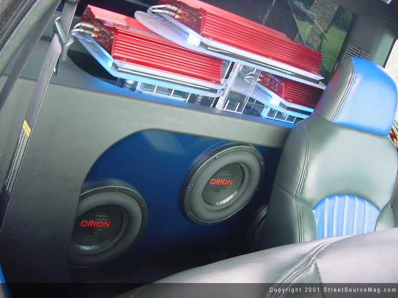John's choice of head units was a clarion pro audio, along with the head unit he installed a Zapco sp7-sl equalizer running to Mb quart Q-series mids/tweets and Orion HCCA 10's. To supply power to all these speakers John is running 1 Orion HCCA 250, 2 HCCA 225's and 1 ADS p-4100.