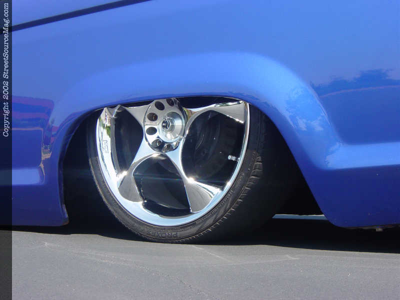 While they had the suspension apart, Chad also installed a complete air bag system and TCI 4-Link. Being Chad is a paint and body man by trade, making sure this truck had all the body mods necessary to take on the show scene was not a problem. When he got the truck, it already had some bodywork done, but that was quickly stripped out and redone to make sure everything would be perfect. Chad first did the usual and shaved the door handles and antenna. He didn't stop there! Starting at the front, the side markers on the fenders were shaved. A billet phantom grill was also added to smooth out the front end. Next the cowl was shaved and then welded to the fenders for a drastic transformation. Once you go to this level of modifications, you can't go back. Now at the back of the truck, there is a new skin along with taillight fillers and a roll pan all welded up to completely smooth off the rear.