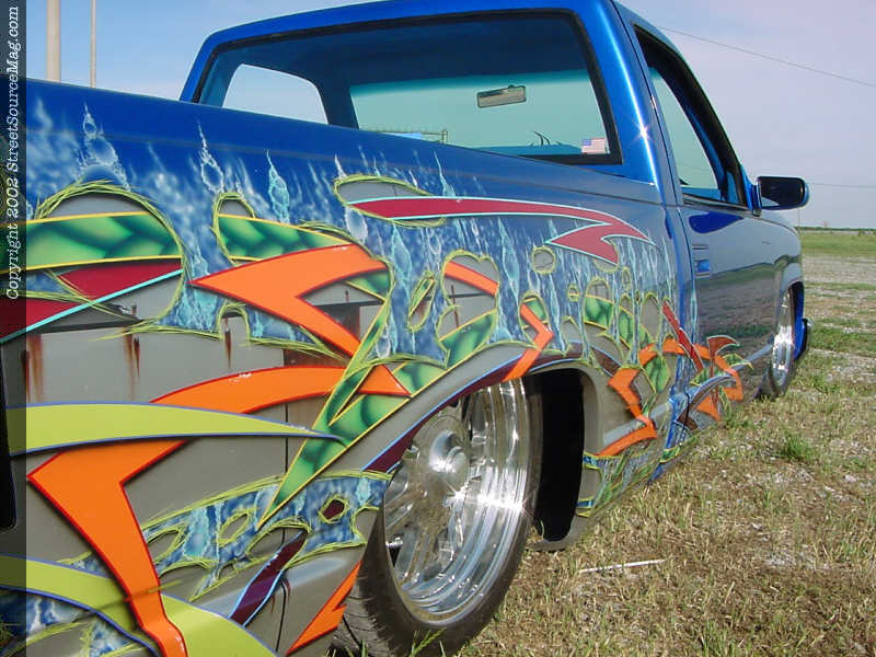 The exterior bodywork was done at Twisted Kustoms also, while the bodywork was being done they made sure to pull this truck completely apart and touch every piece of metal with paint. Some of the bodywork included shaving the gas filler door, tailgate handle, antenna, molded roll pan and to add to the slick body, a smoothed firewall.
