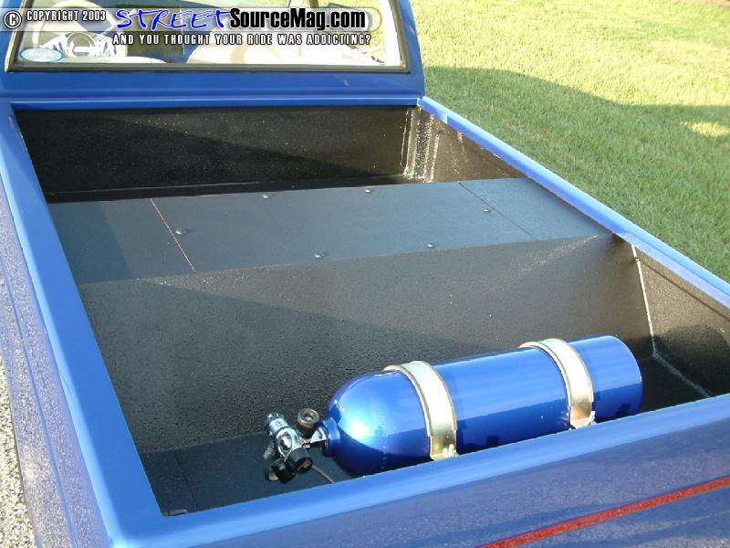 Envisioning the ultimate in low and knowing it would need to be done to gain respect through out his peers, Tony would begin by dropping the S10 off to the crew at Dezine Werks in Winston Salem, NC. While in their hands the S10 would be body dropped 3 inches.  They would install a custom 4-link along with installing a set of Toxic shocks, DJM 2 inch spindles, and manual Wildwood master cylinder along with bags at all 4 corners. A scuba bottle would be used to maintain the air, while the regulator has been bushed to 150 PSI.