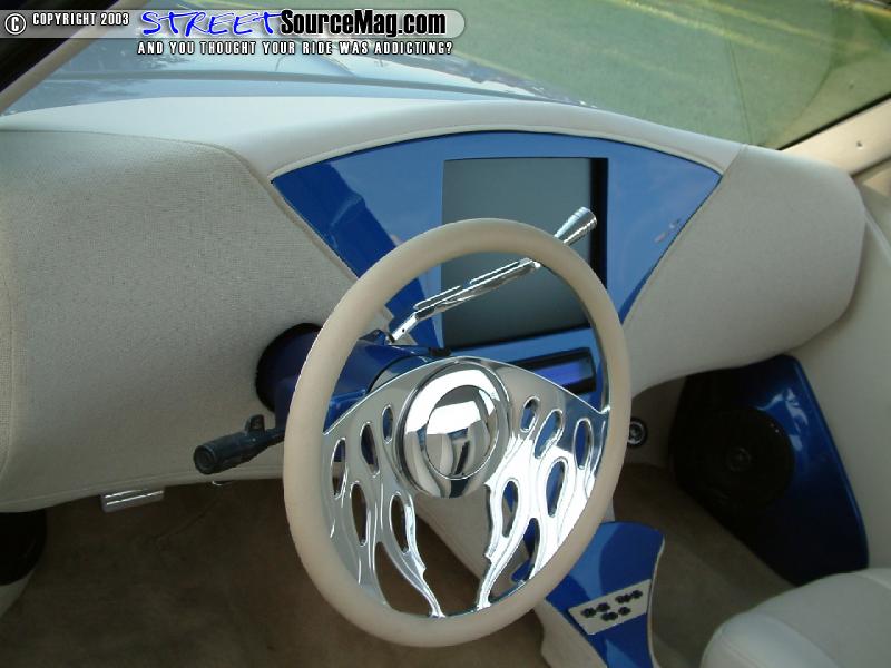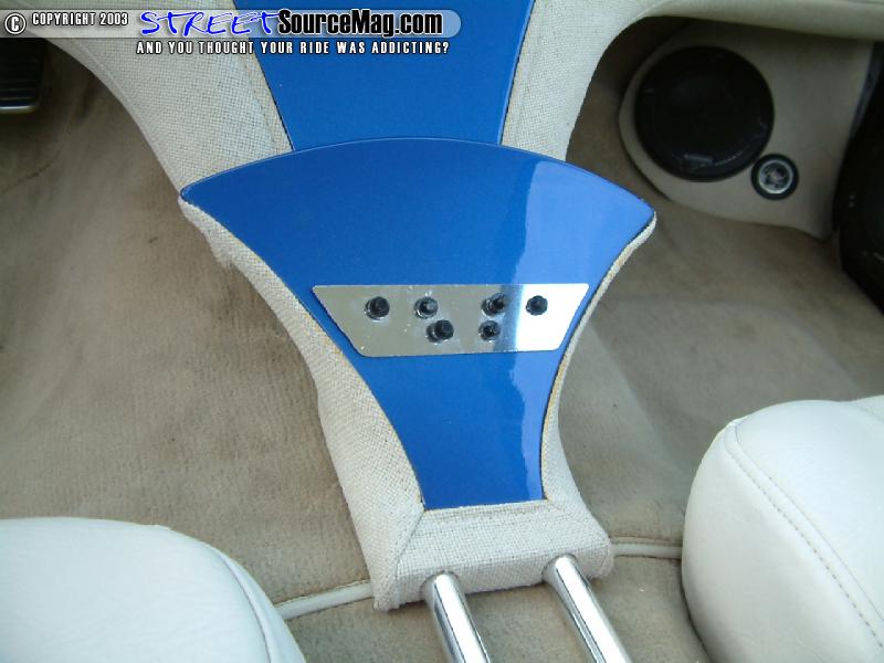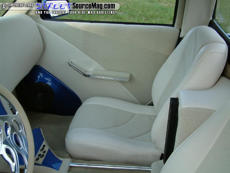 Other interior panels would be wrapped in vinyl. Next Tony would bring the seats to Rick's Upholstery of Mooresville, NC to wrap the new Grand Am seats in sand tweed with light beige vinyl insets. To help pull things together, a Billet Specialties steering wheel would be installed along with an Empire rearview mirror. To finish the light color look, the stock carpet was replace by a beige one from a Lexus.