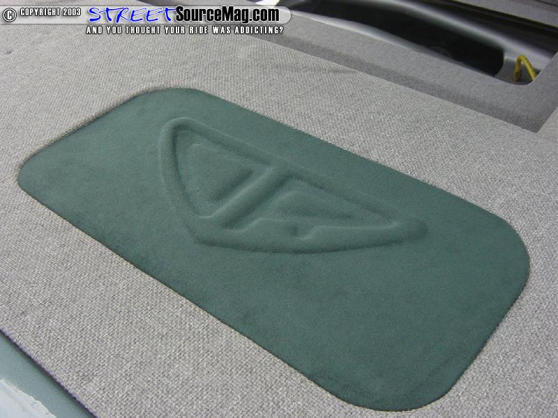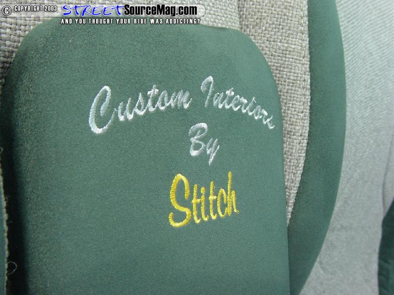 Now that the dash was done, it was time to find a pair of seats that would fit the flow of new dash. For that, Scott chose a set of front seats from a Pontiac Sunfire. The seats along with the rest of the interior was covered in gray tweed and green suede with just enough graphics throughout to bring it all together. Stitch also constructed a pair of custom door panels as well.