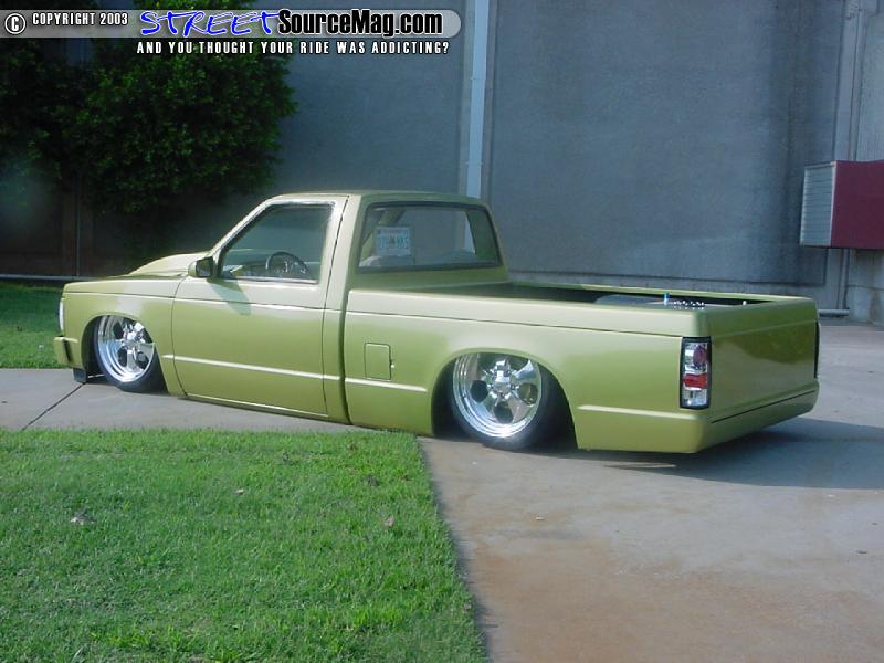 To get started with the build up of the truck Rusty knew he had to bring this future eye catcher close to the ground, up front Rusty yanked the front coil springs, shock and spindle and mounted up a 2" drop spindle, firestone airbag and a set of drop shocks. Out in the rear of the truck Rusty took it upon himself to junk the factory leaf spring and mount up a 3-link/panhard setup in their place.