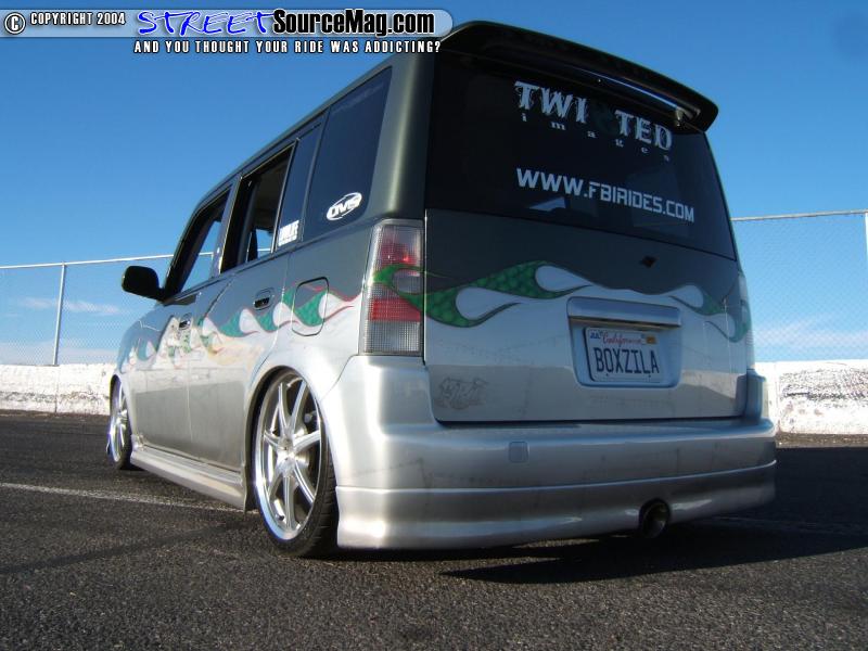 From there, it’s was time for the little box that could to get a face lift. First Phil started with some custom tricks like shaving the rear side markers lights and relocated the exhaust cutout to the middle of the rear bumper. Once that was done, he bolted on a set of Trenz framed perimeter billet grills, bumper grills, and hooking up a carbon fiber hood then it was off for paint. Most people would just hit up their local paint shop to clean their ride up, not Phil, he took his ride to James Cashman of Cashman Customs in Concord, Ca. who is responsible for all the graphics on the Scion.