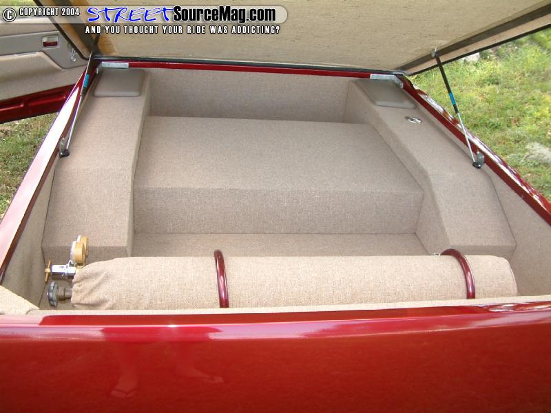 Smoothed and painted Chris would then relocate the headlight buttons while wrapping the door panels in tweed with vinyl inserts. The headliner would then be wrapped in tweed along with other interior panels. Chris would decide to ditch the stock seats and replace them with a set of headrest-less Amigo seats wrapped in a two-tone tweed and vinyl style done by D & I Upholstery of Tampa, FL.