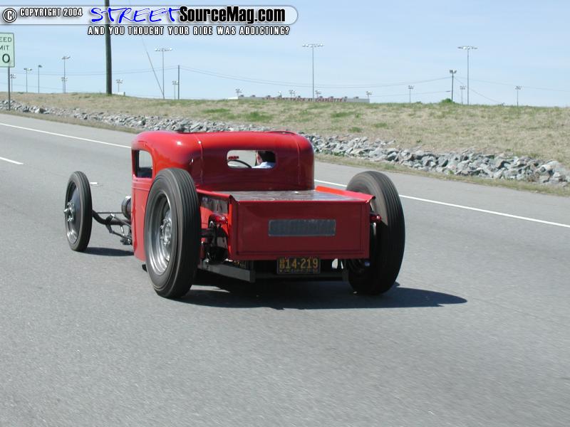So as it came to a close and winter was slowly fading the guys headed to the paint booth for a few good coats of gloss black for the chassis and International Harvester Red for the body. Yes that is all straight enamel paint for that smooth finish that lies on there. Final assembly began and things that had become mock up went back on for the last time. The lights were off a model T aftermarket deal with aftermarket bubble lenses. The taillights are actually Dazey brand 1960’s ice crushers cut down. The steering was a Corvair box that Jeff built all of the linkage and so forth for to steer him in the right direction. As for a wheel to hold to while starring at that European EBAY dash he stole a wheel from one of his 1968 John Deere lawn mowers. The seats were built from wood and covered by a co-worker of Jeff’s.