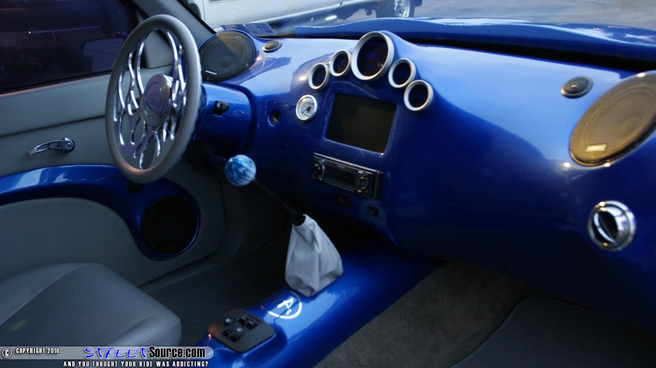 But before Carl could even enjoy his new toy, the new owner of his Chevy was already complaining that there his new ride was leaking air like a sieve, unable to hold air for more than two hours at a time. At that point, if you can’t fix a supposed air leak, probably created by you in the first place, perhaps it’s time to throw in the towel. “I drove that truck everywhere,” Carl says. “I could leave it up for over two weeks without ever having an issue and this guy gets it and suddenly it won’t last two hours.” Moving forward, Carl will be the first to admit that he pretty much bought the truck as it sits in these pictures today. Giving credit where credit is due, most of the work was completed by the original owner and his team of builders. Thomas Matzke, the original owner of the Tacoma, started by sending the truck over to Chase at Real Life Kustoms in Camilla, Georgia to start this truck off right with a solid foundation. Starting out up front, the front clip of the truck was Z’d while the rest of the frame was scrapped and replaced with new frame rails. DJM upper control arms and Slam Specialties Re-7’s are utilized up front while the rear received a 1992 Toyota Hilux rear axle and a two link. To plant this Taco to the pavement, 20x7.5 American Racing rims were wrapped in 225/30/20 Nexxen rubber. Real Life Kustoms also continued the build by handling the body mods and paint scheme as well. With the truck body dropped 3 ¼”, the truck was completely shaved of all its unnecessary extremities, such as the door handles, tailgate, taillights, and antenna. The bed was smoothed out and a GTO hood snorkel was grafted on to the factory Tacoma hood. A Grant Kustomz full skin combo found its way out back while Street Scene mirrors replaced the factory ones. Once the body of the truck was worked to perfection, Chase sprayed the truck with Mono Chromatic 2005 350z blue while Pinstriping Mikey added the pinstriping on the hood. With the exterior of the truck was pretty much wrapped up, the truck was turned over to Dale at Xzibit Upholstery in Tampa, Florida to start on the interior. 1996 Toyota Celica seats were wrapped in blue and grey leather while the carpet was also laid in light grey as well. Steve Colley was then tasked to fiberglass the dash, which was then painted to match the exterior of the truck. A Colorado Customs billet steering wheel and billet handles gave a nice accent to the interior while Cyberdyne digital gauges rounded out the dash modifications. Steve Colley was called upon once again to add the killer stereo system found behind the front seats. A custom fiberglass box was built to house the two 15” Audiobahn subwoofers and the Audiobahn amplifers. Audiobahn 6 ¼” and 1” tweeters can be found in the doors and dash of the truck as well. To maintain control of all of this audio gear, a Kenwood head unit was mounted in the dash along with a 7” viewing screen. Carl would like to thank Thomas and Chase for all of their hard work and creativity that went into the truck, along with anyone else who was involved with the original build. He would also like to thank all of his Acrophobia family for all of their support to keep wrenching on the truck. And of course, he would like to thank his daughter for making a great decision.