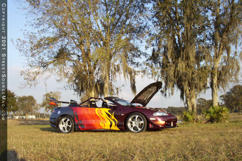 For some people, building a show-winning ride takes numerous attempts. Sometimes it means taking that vehicle apart time and time again in an attempt to make it stop a crowd dead in their tracks and make there jaws drop. But that isn't the case with Gary Ryan's '97 Mitsubishi Eclipse GST Spyder. You see, the Eclipse was originally Gary's daily driver, which is how most custom rides start off but this is where the similarities stop. One day Gary approached his wife with the idea of selling the plain stock car and buying something a little more practical to drive every day to work. What better place to advertise the car than at a local import show in Gary's hometown of Miami, Florida. Taking the advice of the shows promoter, Gary entered the car into the show hoping to bring more attention to its "For Sale" sign. Well he didn't sell the Eclipse but he did bring home a first place trophy and that set the ball in motion.