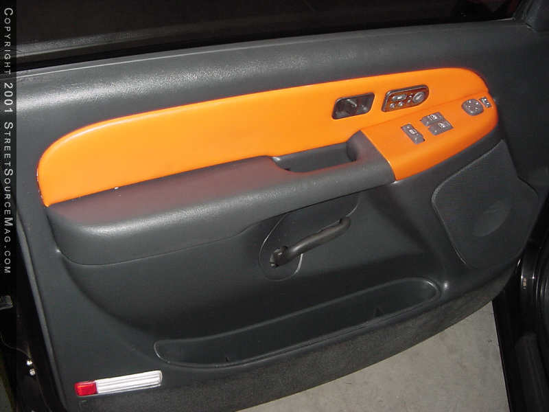 Turning the focus to the interior, Chad relied on his own shop, Trikin' Out Truks to get the ball rolling and change the boring factory interior to something any judge could admire. First, the dash face was removed and painted the same House Of Kolor orange as the exterior.   The center console and several door panels were also removed and painted using the same orange, before being reinstalled. The door panels were wrapped in gray leather as well as the headliner.
