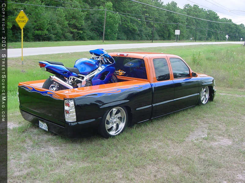 Krause's Collision began the paint process by first two-toning Chad's Chevy utilizing House Of Kolor black and orange, and then diving the two colors using House Of Kolor Cobalt blue.   Krause's Collision then used selected silver, also from House Of Kolor, and laid down a slick pinstriping scheme that truly brought out the flames that divide the two-tone color scheme. After laying down enough clear coat to make anyone jealous, Chad's Chevy was ready for its next stop on the customizing ladder.