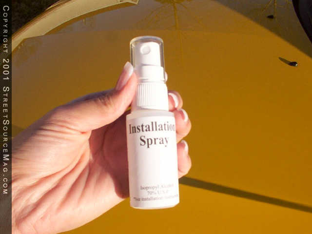 Spray the "Installation Spray" on the tape side of the dash kit after removing the backing to keep the piece from sticking on contact. This will allow you time to set the piece where it needs to be. Thoroughly clean the panel the kit will stick to with rubbing alcohol to remove any grease, dirt and most importantly silicon spray such as Armor All.