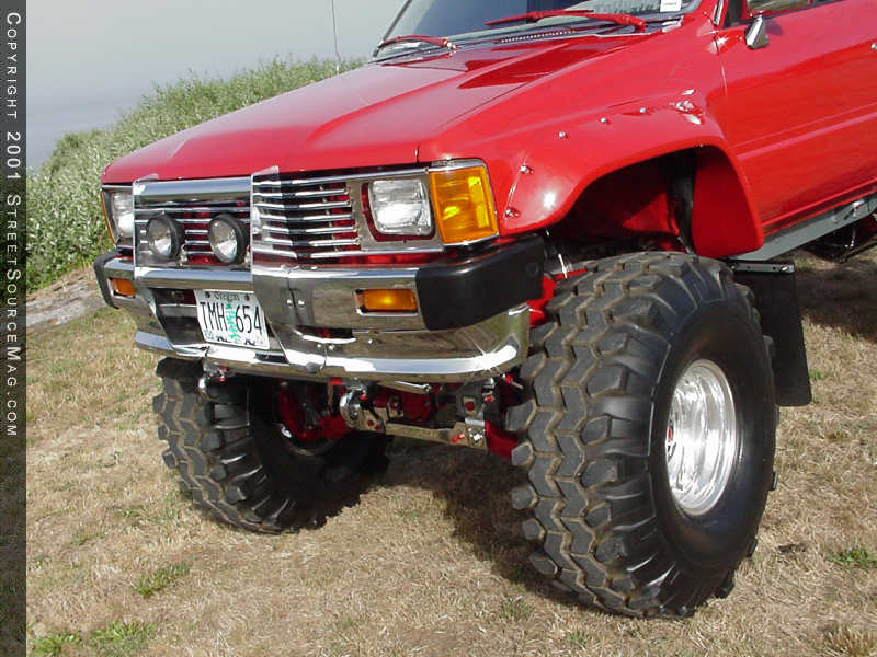 At the age of 33, Will has realized for some time now that patients will get you far in life so why not keep his pride 1987 Toyota 4x4 and build it like he had envisioned from day one. After purchasing the Toy new for $10,200 back in June of 1987, it would take many more G's and 6 years before becoming happy with the "not yet complete" ride. With being introduced to the custom automotive scene by friends nearly 10 years ago, Will knew that what he wanted to build would be for show. Having every single inch customized I'd have to say that Will has built one bad Toy to dominate his class in the show world. Starting with the exterior, many items would be removed and placed into the dumpster for Mr. Happy trash man to dig through. Starting up front, the grille, bumper and valance would all be chrome plated along with the tow hooks and an aftermarket nurf bar would be installed to give the mean "I'm going to run you over" appearance.