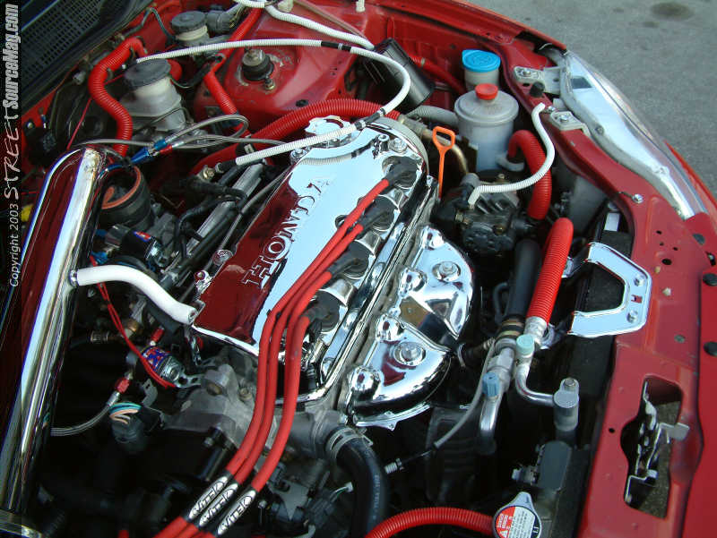 With the exterior and interior complete this would leave the engine needing some of that much needed attention to make this Hatchback an all-around show ride. Beginning with the looks, Ellis would have the valve cover chrome plated along with the heat shield and random brackets. Next Ellis would pull all the hoses and cover them with an array of red and white silicone hoses.