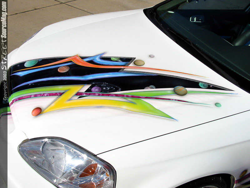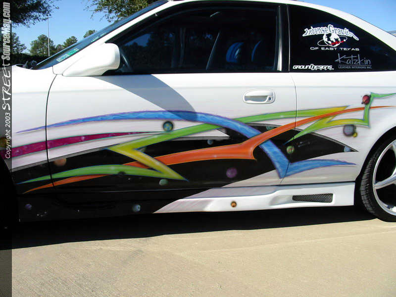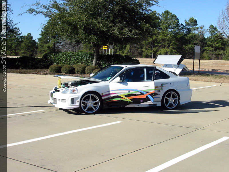 If all that wasn't enough, Brannon then came up with a truly unique paint scheme for the car, that would eventually set it apart from every civic. The scheme starts off with the factory white basecoat, and splits open to a black base coat, which was then overlaid with multiple sets of tribal art.