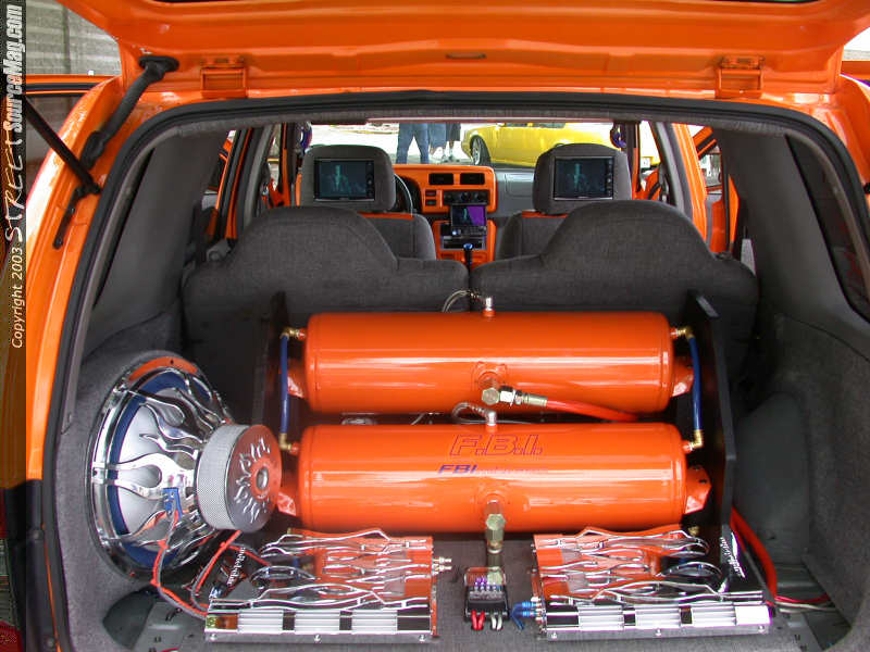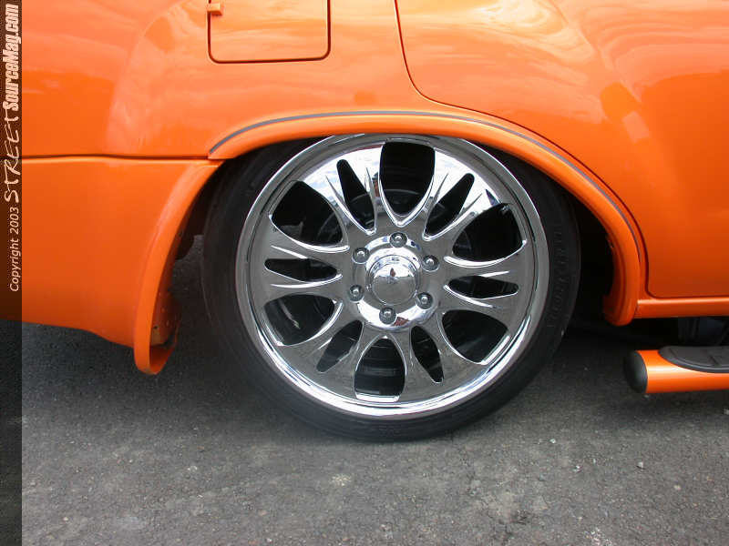 The front would be bagged with ½ inch port 2500lb bags while Rancho RS9000X shocks help stability all the way around. Finishing off the air would be 2 Viair Compressors, FBI air tanks, ½ inch orange hydraulic line with stainless steel fittings. Needing some extra room for the low, a custom cross member was installed and the Drive shaft needed to be shortened, which was done by Drivelines NW of Tacoma, WA.