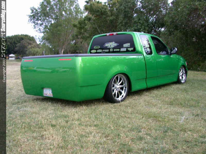 The next goal on the long list of modifications to complete would be bolting up a set of 20x8.5 inch Evo 5 wheels wrapped in 265/35 inch Dunlap's. With the wheels bolted up CJ would then need to notch the frame rails along with the wheel wheels to allow room when laying out the airride.  Toxic shocks are bolted up all the way around to help with the ride while SMC valves, 4 switches and ½-inch line bring about the air. A set of lower control arms helps to bring the front end down even with the rear.