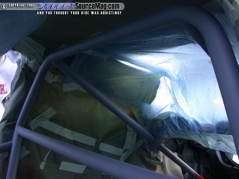 Start off by taking the seats and any other interior piece that will hinder your ability to get around the pieces you are painting. In our case we took out the seats since the come in contact with the cage. Then mask off the entire interior so you don't get overspray. This is the most important yet difficult and time-consuming part of the process. If you mess up and leave areas exposed then you will not be happy with the results!