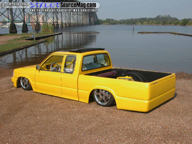 Continuing the work from the exterior, Daniel turned his attention to the interior of the truck. First, he installed a custom black sliding ragtop for the days he likes to feel the wind in his air.   Then, he carried the Chrome Yellow paint inside and slathered the dash and accent pieces to match. He swapped the stock seat material for gray vinyl and suede and also smoothed and covered the new door panels to match.