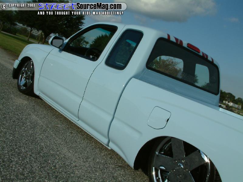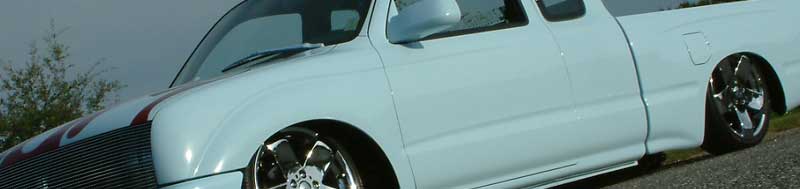 Most of you might remember this ride as being black with orange flames and once upon a time featured here in the pages of SSM. Well Heather Elsken of Grenada, MS is back yet again with a slew of changes with her Tacoma Ex cab. With the cost of the ride being $18,000 back in 1996, Heather would dump in another $25,000 through out the build-ups. It took Heather with help from significant other, Joey, 8 years to build what you see having been featured many times before redoing it this time round. Although this ride is never complete in their eyes, it is merely rebuilt from time to time. The reason for building this ride was to simply build a driver as well as a showstopper. Heather has been involved in the scene for 10 years now and it shows from the detailed work put into the build up.