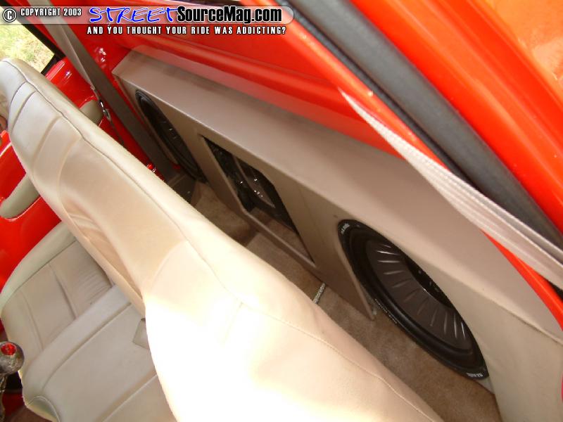 Tying things together, Chas would install a B.A.D. Maltese steering wheel along with a billet rearview mirror and painted vents. With the seat belts not bolted in and PVC used as the roll bar, Chas would move on to the stereo needs.