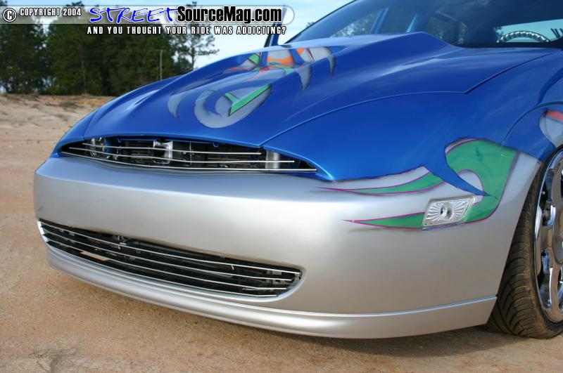 Keeping with the tossing of the old, and in with the new theme next to go would be the stock headlights, which where shaved completely off. A custom-made billet grille was fitted along with a VIS Cobra fiberglass hood to finish off the look of the front end. A gaping whole was cut in the roof to fit the 35x40” Street Beat Customs sliding rag top. Next the front and rear bumpers would be molded in to give the body of Stevie’s Focus a clean and seamless look, while still maintaining the clean look they where going for.