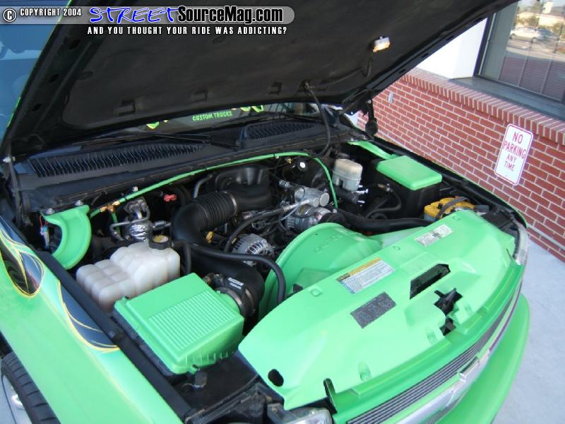 While most would stop there, Aaron new that to maximize his points at shows, he needed to add a little spice under the hood. For that he painted all the plastic pieces in a matching green to the exterior along with other various engine pieces. Then he added an engine dress up kit along with covering all hoses in more accenting green.