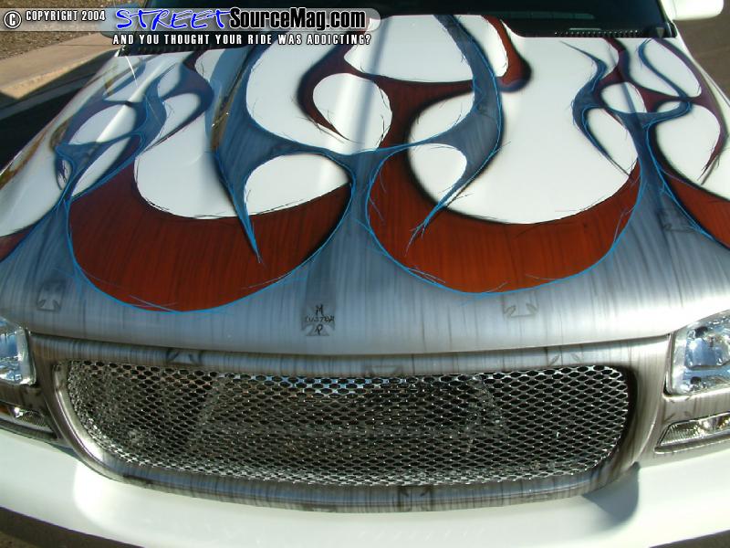 Tahoe door handles would then be found in the place of the stock handles while Yukon clears would take the place of the stock headlights, while ’03 Chevy taillight are found out back. John Owens of Phoenix would handle the bodywork and modifications while Mark would leave the paint work to Troy Buck of Monster Paint F/X.