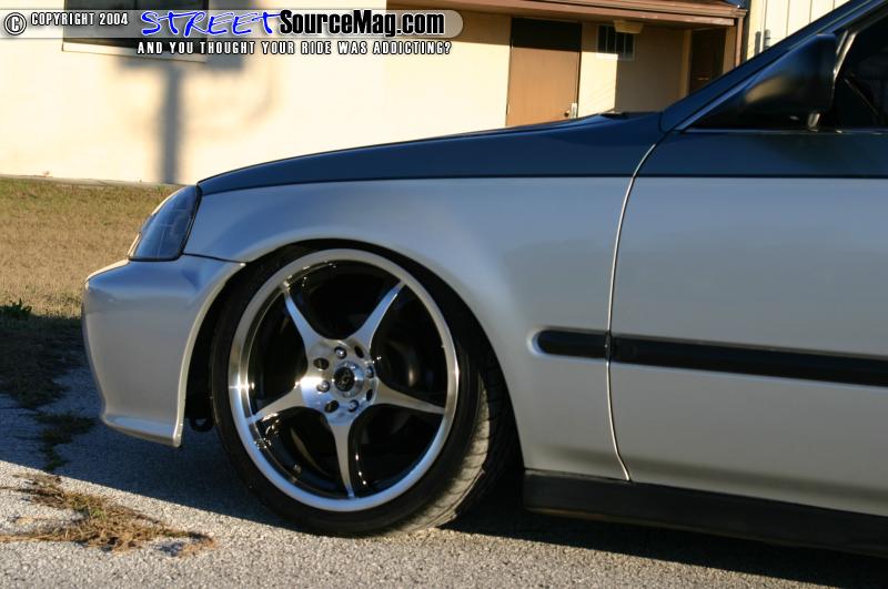 With the majority of things completed that Sal wanted done he next moved onto the suspension. Sals Civic sits on air cylinders on all four corners. A chrome 5gal air tank dumps into ½ Danz Valves to lay it out on the 17” ADR Phantom wheels.