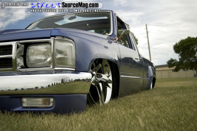 Now it would be time to work over the exterior confines. Starting up front an ‘88 4wd chrome grille would be installed side by side with the new 4wd Fenders. Next a set of ‘97 4wd Tacoma bumper and valance would be installed along with a set of clear corners. Continuing on, the hood squirters, wiper cowl, antenna, gas door, door handles, locks, taillights, body seams and rear corner bodyline would all be shaved.