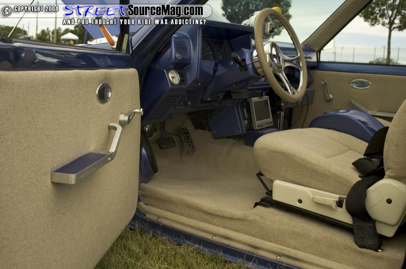 Custom kick panel’s would be set in place while the doors house billet door handles, armrest and window cranks. The panels not painted would then be wrapped in tan tweed to match the wrapped seats. Also found within the interior confines would be a set of Lanzar 6.5 mids and two 10” Power Acoustik subs all ran by a 1600w amplifier.