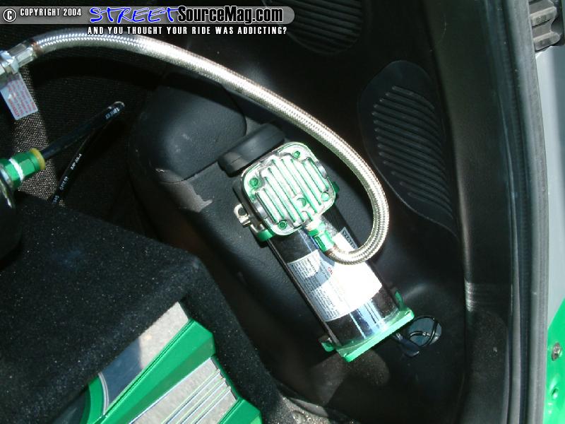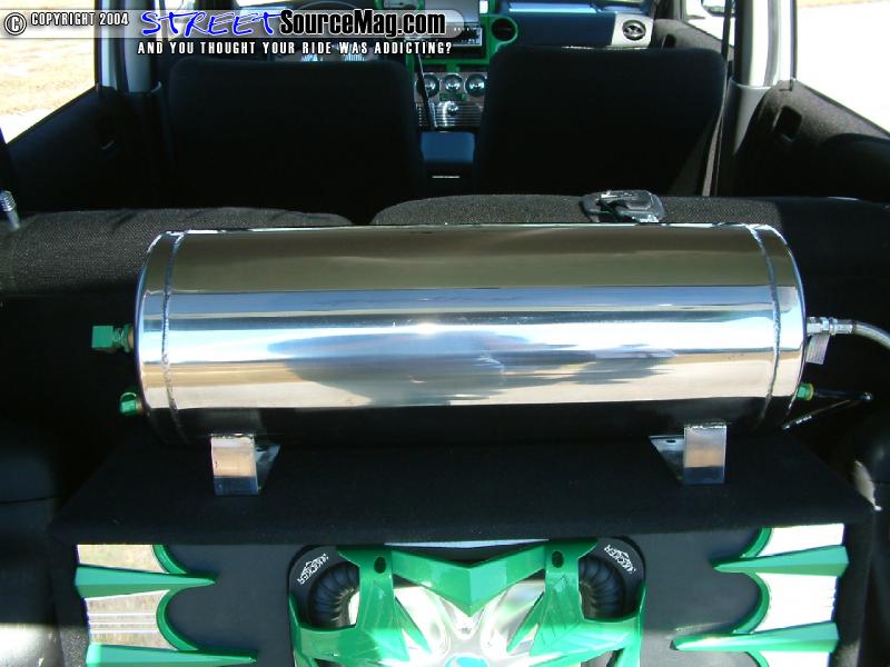 After purchasing the Scion back in Dec of ’04 it would be driven for about 7 miles before being bagged. To handle this feat Mike would install a set of McPherson struts upfront along with a set of Contitech 2500lb bags in the rear.