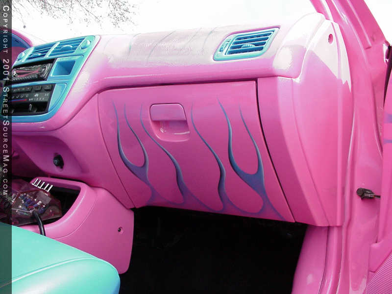 Starting in the dash, Slammin' installed a Pioneer 9000 headunit and then installed JL Audio 5.25's in the doors. A JL Audio 15-W3 sub resides in the rear and Crossfire 1000D and Crossfire 50.4 amps drive the entire system. Since Karen's Civic is more "show" than "go," only a few minor changed occurred under the hood, but were made specifically for winning shows. You'll find a highly detailed stock engine, complete with painted to match parts such as the valve cover and intake, which were both painted pink.