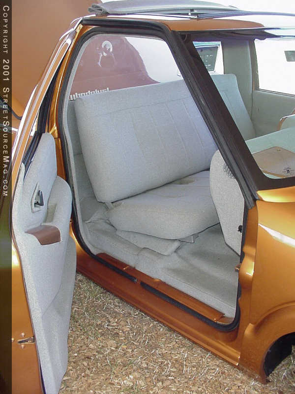Up front, a grille shell from a '96 Blazer was installed complete with composite headlamps and a Trenz billet grille insert. The factory back glass was removed, tossed and a lexan unit, complete with license plate box, was installed in its place.  Next, a big hole was cut in the roof, allowing for the installation of a 40x24 Street Beat Sliding ragtop. Dennis also decided to ditch the factory mirrors and installed BMW M3 mirrors in their place. Finishing off things was a fiberglass bed cover. After Dennis' list of body mods was complete, he rolled the truck over to Harper's in Orlando, Florida where the entire truck was sprayed using '98 Volvo Saffron paint, then buffed to perfection.