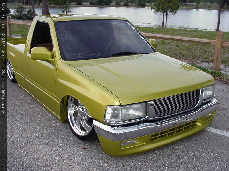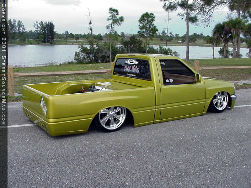 AON shaved the gas filler door, rerouted the filler next and installed a Hagen gas door to the sheet metal bed as well. Another nice body mod AON performed was the installation of a flush mount LED third brake light, which can be found on the back of the cab. Up front, the Isuzu received a few custom touches including a chrome Isuzu bumper and valance from a '97 Rodeo, Rodeo headlights, Trendz billet grille insert and chrome grille shell and '97 Rodeo side-view mirrors.
