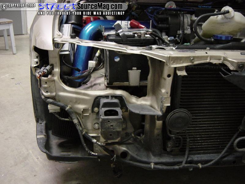Now that all 5 bolts are removed on each headlight, the front crush panel will need to be removed. There are two 6mm Allen bolts under each headlight that will need to be removed to allow the crush panel to come off.