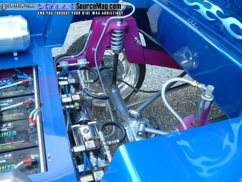 The frame would then be accompanied by a T.C.I. 4-link to help the rear get down. With the adjustable suspension all installed along with the front spindles set in place, Devin would do a 3-inch body drop. Dual aluminum 3-gallon fuel cells would be installed to make room for the drop and interior needs while stainless brake lines where installed for the look and durability.
