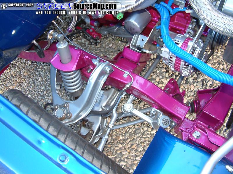 Getting things going Devin would handle most all the work on his own time. First on his list would be to fill 280 factory holes on the frame along with sectioning the rear of the frame and notching it for the rear axle clearance. Next the frame would be powder coated purple for the full frame off appeal.