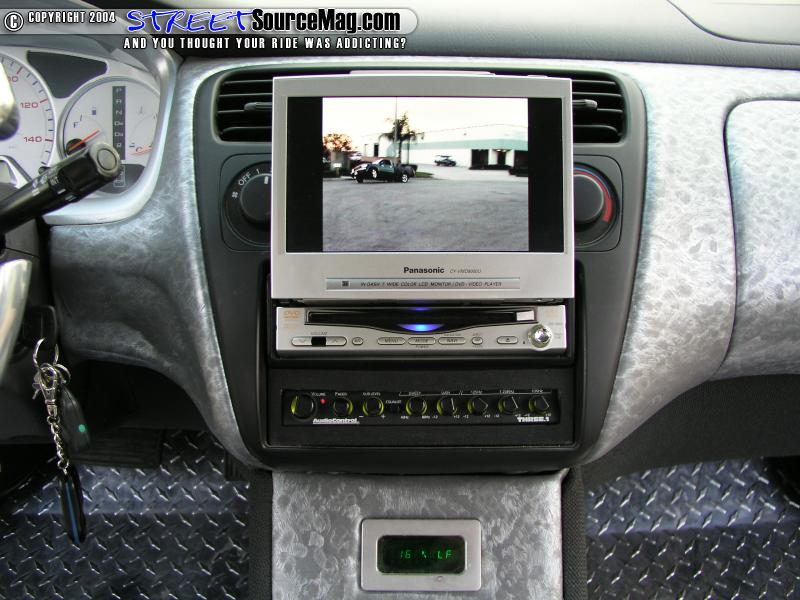 Keeping the overall show ride intact the stereo would then be upgraded through out. First would be the installation of a 7” Panasonic 9000 in-dash CD/DVD player along with an Audio Control 3.1 EQ to manage the sounds. HiFonic 5” components, Polk Audio 6.5’s in the doors with Polk Audio 6x9’s in the rear help keep things screaming while 10” chrome Audiobahn Flamed 1800w subs keep the bass at loud levels.