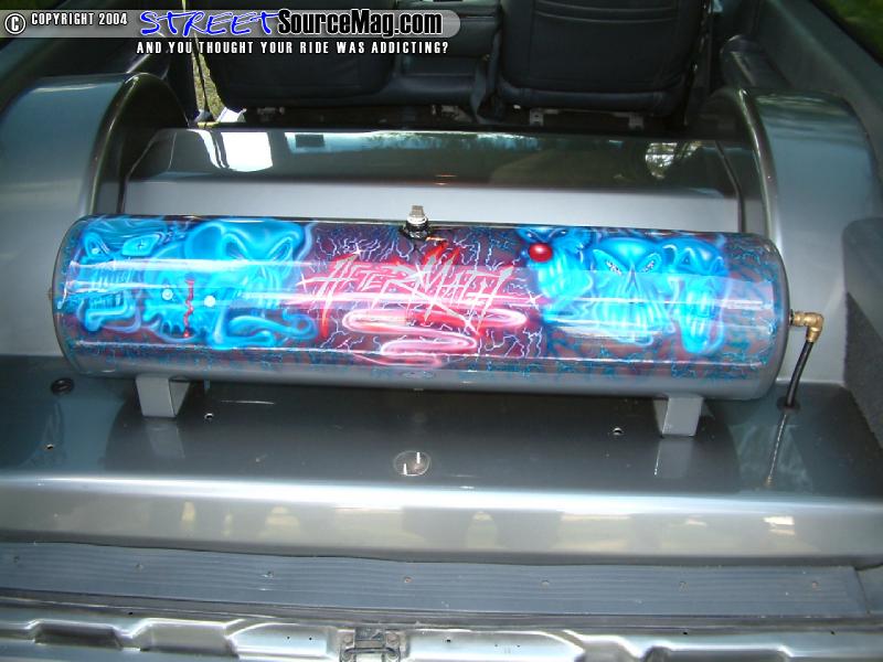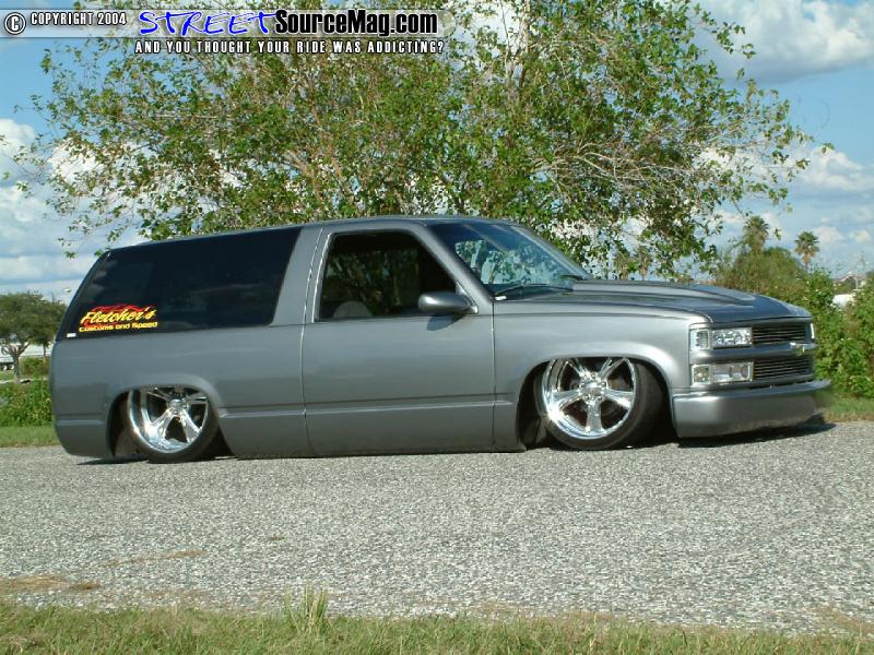 The crew at Fletchers would then custom modify the stock control arms ensuring clearance all around. Ensuring enough room under the beast, a 20-gallon aluminum gas tank would take the place of the stock bulky tank adding more room for low. A set of Monroe shocks and Slam Specialties RS72 bags would then be placed at all 4 corners for adjustability. For a cleaner look stainless brake lines would then be ran through out.