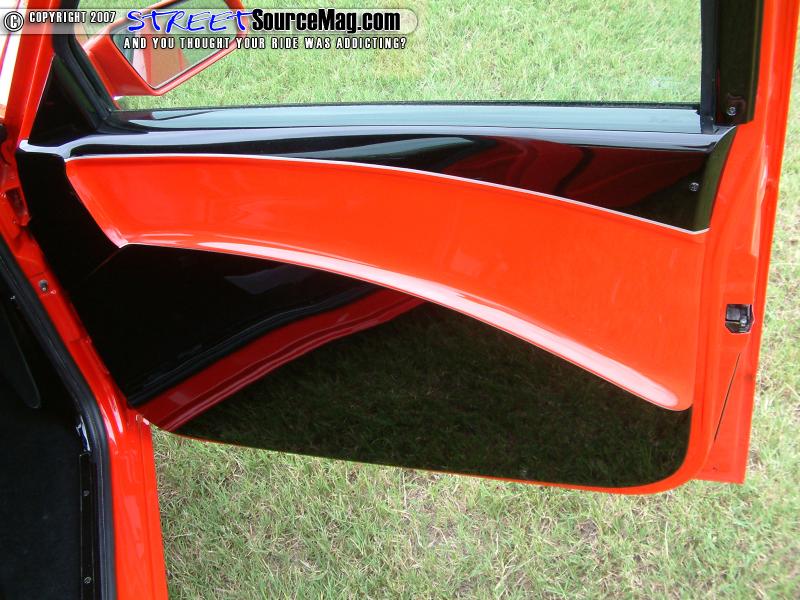 Having the bodywork complete would leave Steve with the interior confines needing the same attention. With the need to keep up with the exterior the dash would be hand made out of steel and painted along with door panels. Keeping up with the new panels Shane would install black leather seats along with painting the remainder of the interior panels.