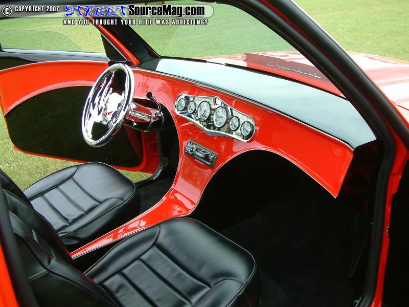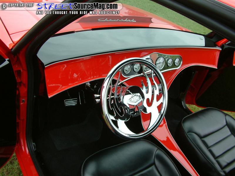 Not yet complete, the installation of Auto Meter gauges, B.A.D. steering wheel and billet bowtie rearview mirror help finish things off. Mikes Upholstery of Columbia, TN would handle the interior needs.
