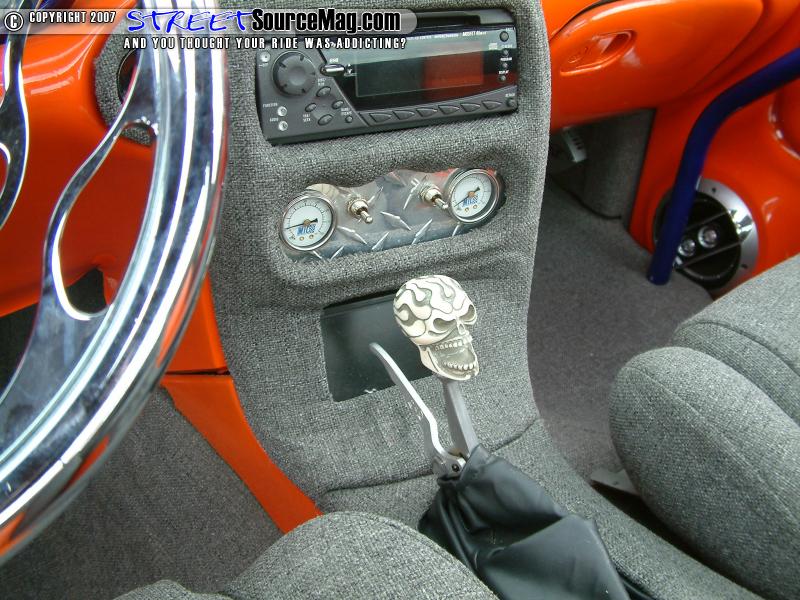 The interior would be no simple task as the dash would be replaced with a smoothed and painted '00 dash along with door panels to match. The headliner would then be wrapped in tweed with flamed graphics along with other interior panels wrapped to match.