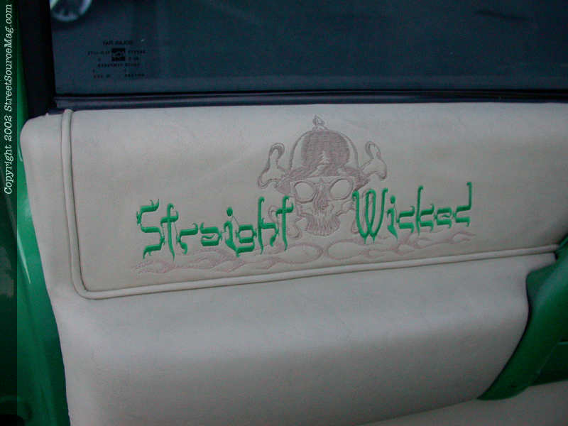 To help bring out the new interior, a set of NR white faced gauges, a Weld Racing steering wheel along with an Auto Diming rearview mirror. Most all interior done by Apollo Upholstery of Alhambra, CA. Interior Embroidery by Lancaster Embroidery.
