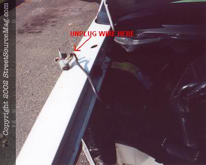 Step 7 There, it's off. Disconnect the antenna wire from it's base and throw the thing into the scrap heap. Step 8 Here is the wire snaking it's way down the firewall. Undo any hooks that might be wrapped around it, and push it into the cab. Now we move inside. Step 9 Start by removing your dash surround. There are two phillips head screws above the gauge cluster, then the rest of it simply pulls off by the means of clips. Undo these two connectors that are for the lighting controls, and the surround is free. Wiggle it off, and set it aside.