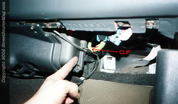 Step 13 Move into the passenger compartment, and locate where the antenna comes into the vehicle. It will be right under the top edge of the carpet. You will have to remove the lower dash cover that is right above it, and that is four more 7mm screws. Step 14 Now that the lower dash is off, we can see what we are doing. The antenna wire runs up the middle of the dashboard and is held in place by 2 clips. The first is in sight and removed easily. Step 15 The second, however, is not visible, so you can take the whole dash out of your truck, or pull upward on the antenna wire sharply. Doing so dislodges the clip and the wire is free. DO NOT remove it at this time.