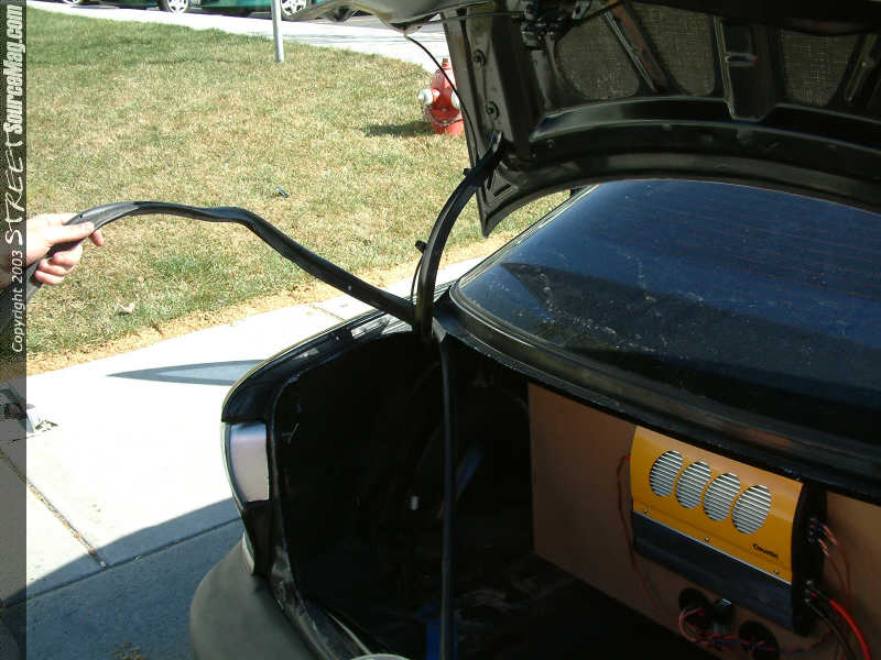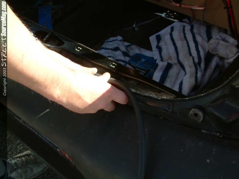 This lid comes with a replacement seal. So we need to remove the factory one and replace it with the one supplied. It's as easy as pressing it over the metal edge. Close the lid gently and test for proper alignment and fit. Make any adjustments as necessary, and then tighten the bolts/screws.