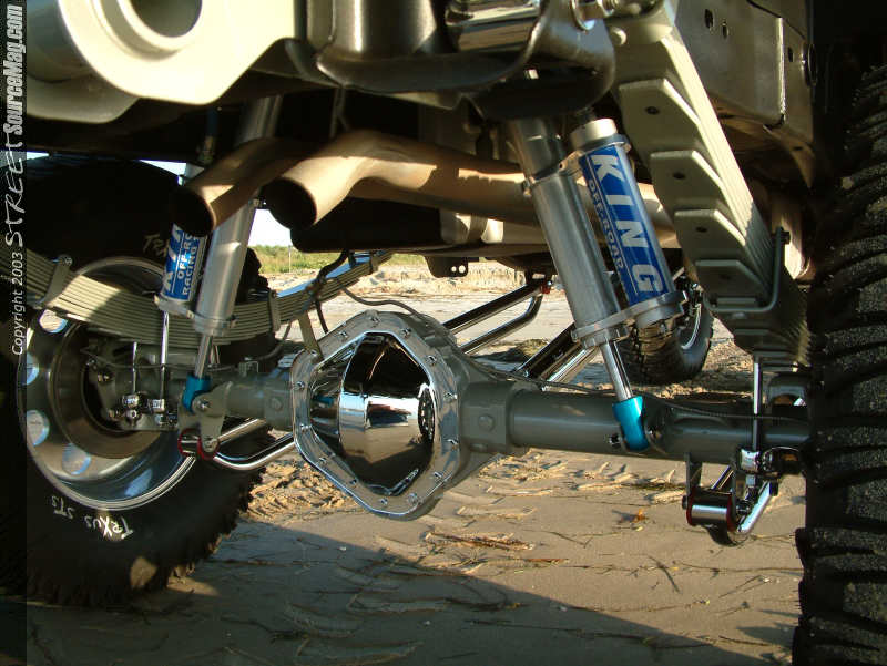 After the build up complete, the bars would be chrome plated along with much of the suspension items. To help the suspension and rough road riding, a set of King coilovers would be installed front and rear. With a 3-inch body lift, there was no problem clearing the fenders with the 20-inch KMC wheels, which have been wrapped in 40 inch TRXUS SuperSwampers.