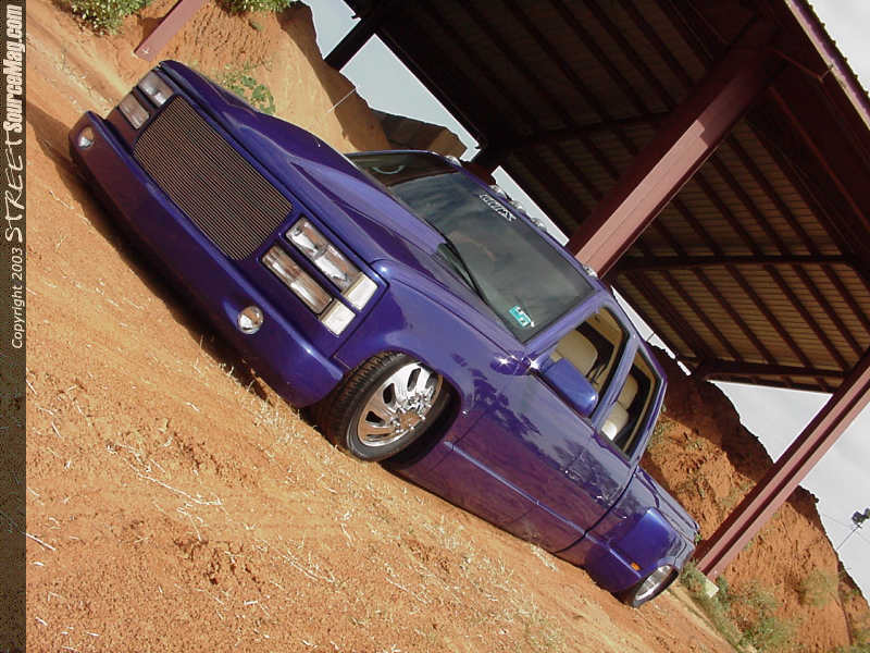 Moving back, the door handles would be shaved on all 4 doors along with welding in a Chassis Tech roll pan and molding in the tailgate. A hard shell bed cover would be installed to finish things off out back.   With the body work complete and the prep work done, the Dually was taken to Norman Body works of Norman, OK. While in their hands, they would lay down the Acura Supersonic blue paint.