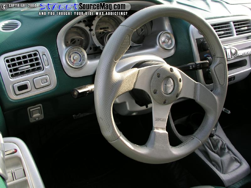 With Lance knowing that audio/video is a big plus in the import scene he would waist no time. A Panasonic DVR 2600 DVD player would be installed indash while JVC 3-ways are installed all around. Three 800-watt Audiobahn 12" subs would then be installed for bass. A 1000 watt Audiobahn 4 channel amp and 1200 watt Audiobahn 2 channel amp would be installed to power the speakers.